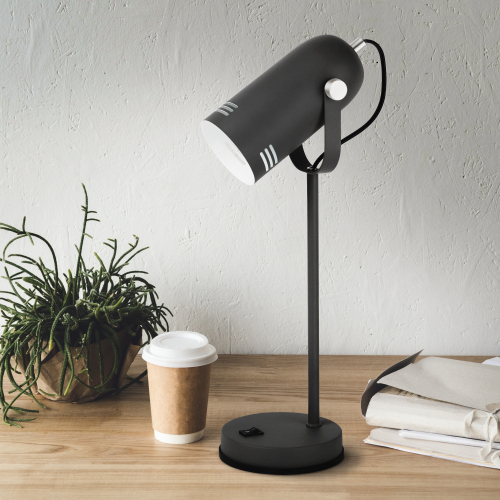 Светильник может использоваться с лампой накаливания, компактной люминесцентной лампой (КЛЛ) или светодиодной (LED) лампой. Металлический корпус с гальванизированными элементами. Устойчивая конструкция. Оптимальные размеры для идеального размещения на столе. Удобная регулировка направления света. Трендовый дизайн и цвета.