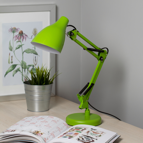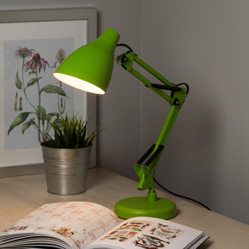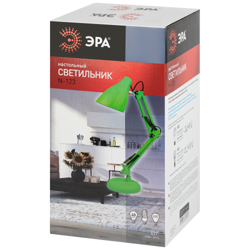 Настольный светильник ЭРА N-123-E27-40W-GR трендового дизайна с классической конструкцией может использоваться с разными источниками света - лампой накаливания, компактной люминесцентной лампой (КЛЛ) или светодиодной (LED) лампой. Выключатель на проводе. Устойчивое основание. Высота плафона регулируется двухсекционной сгибающейся стойкой, направление света - поворотом и наклоном плафона в любом направлении.