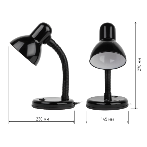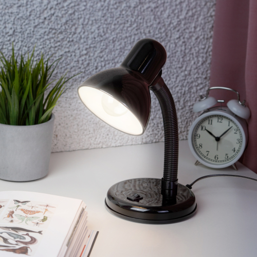 Настольный светильник ЭРА N-211-E27-40W-BK может использоваться с лампой накаливания, компактной люминесцентной лампой (КЛЛ) или светодиодной (LED) лампой. У светильника устойчивое основание, металлический плафон. Наклон и поворот плафона в любом направлении для удобного направления света. Поставляется в "мягкой упаковке" - индивидуальном ПЭ пакете.