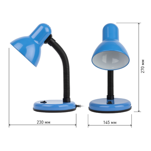 Настольный светильник ЭРА N-211-E27-40W-BU может использоваться с лампой накаливания, компактной люминесцентной лампой (КЛЛ) или светодиодной (LED) лампой. У светильника устойчивое основание, металлический плафон. Наклон и поворот плафона в любом направлении для удобного направления света. Поставляется в "мягкой упаковке" - индивидуальном ПЭ пакете.