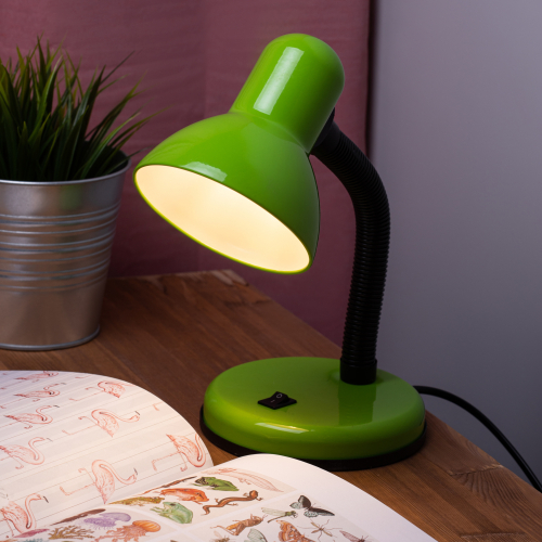Направление света регулируется гибкой стойкой, которая обеспечивает наклон и поворот плафона в любом направлении. Выключатель на основании. Классический дизайн. Предназначен для использования с лампой накаливания или компактной люминесцентной лампой (КЛЛ).