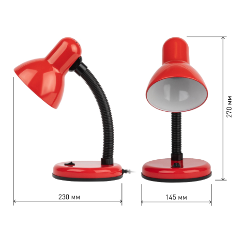 Настольный светильник ЭРА N-211-E27-40W-R может использоваться с лампой накаливания, компактной люминесцентной лампой (КЛЛ) или светодиодной (LED) лампой. У светильника устойчивое основание, металлический плафон. Наклон и поворот плафона в любом направлении для удобного направления света. Поставляется в "мягкой упаковке" - индивидуальном ПЭ пакете.