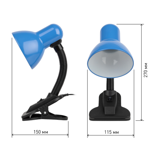 Настольный светильник-прищепка ЭРА N-212-E27-40W-BU может использоваться с лампой накаливания, компактной люминесцентной лампой (КЛЛ) или светодиодной (LED) лампой. У светильника прочная удобная прищепка и металлический плафон. Наклон и поворот плафона в любом направлении для удобного направления света. Поставляется в "мягкой упаковке" - индивидуальном ПЭ пакете.