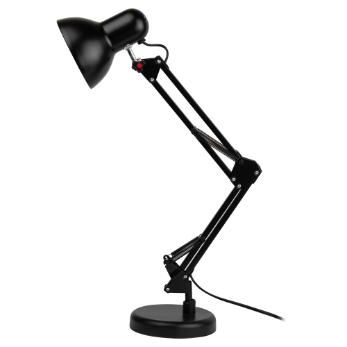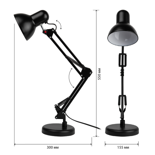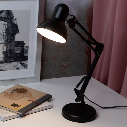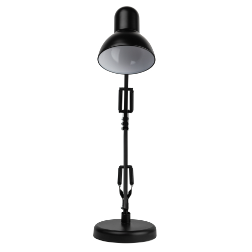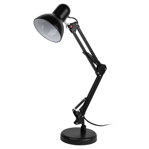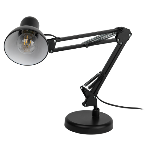 Настольный светильник ЭРА N-214-E27-40W-BK классического дизайна может использоваться с разными источниками света - лампой накаливания, компактной люминесцентной лампой (КЛЛ) или светодиодной (LED) лампой. Выключатель на проводе. Устойчивое основание. Высота плафона регулируется двухсекционной сгибающейся стойкой, направление света - поворотом и наклоном плафона в любом направлении.