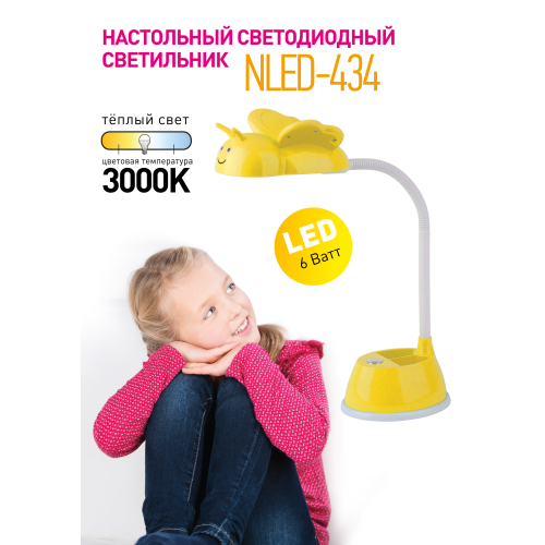 Настольный светильник для детей ЭРА NLED-434-6W-R со светодиодами (LED) в качестве источников света с выключателем. Удобная подставка на основании поможет всегда иметь ручку, карандаши или линейку под рукой. Легкий выбор направления света - наклон и поворот плафона в любом направлении. Яркий детский дизайн в виде пчелки оживит комнату, светильник и станет верным помощником для ребенка в учебе или творчестве.