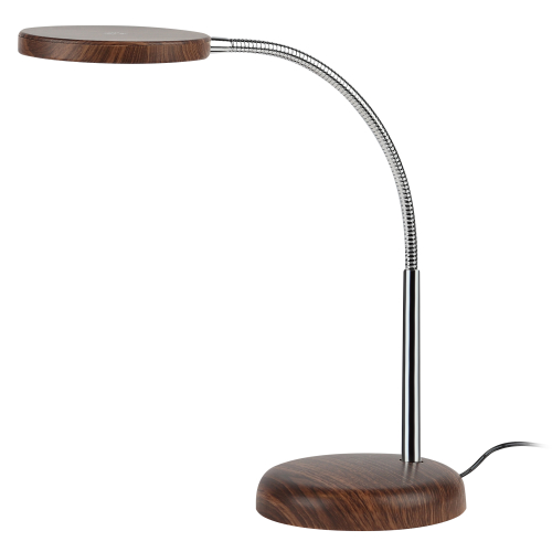 Настольный светильник со светодиодами (LED) в качестве источников света. Теплый свет, аналогичный свету лампы накаливания - цветовая температура 3000К. Выключатель на плафоне. Гибкая стойка.