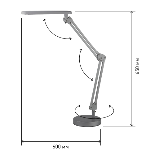 Высота плафона регулируется двухсекционной сгибающейся стойкой, направление света регулируется поворотом плафона в любом направлении.