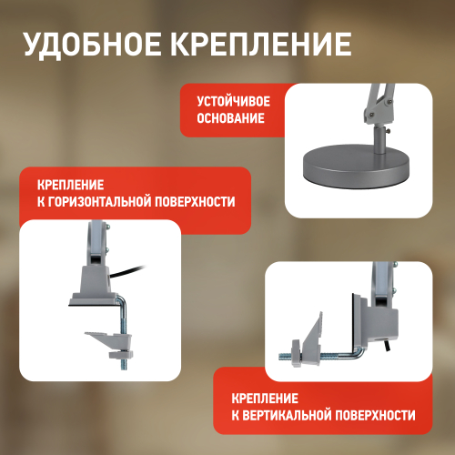 Два варианта крепления в комплекте: основание, струбцина