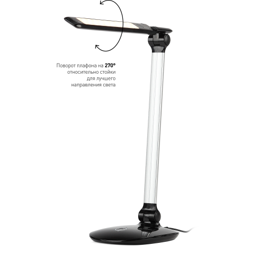 Светильник со светодиодами (LED) в качестве источников света. Выбор цветовой температуры - 3 цвета: 3000К, 4500К, 6000К. Сенсорное переключение. Плавный диммер для регулировки яркости. Поворот плафона относительно стойки для лучшего направления света.