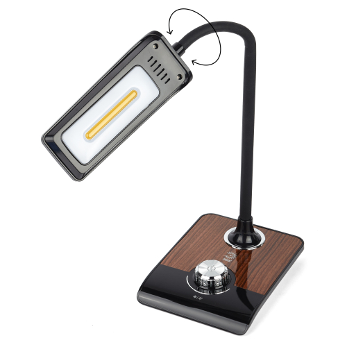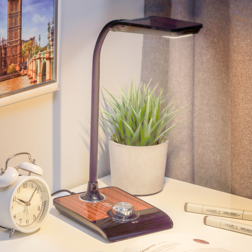 Настольный светильник с необычным дизайном под мультимеедийный блок автомобиля. Корпус изготовлен из прочного пластика со вставками, имитирующими натуральное дерево. Яркому оформлению вторит и высокотехнологичная "начинка" светильника. Он даёт яркий качественный свет (мощность - 10W, светодиоды последнего поколения). Можно выбирать цветовую температуру по ситуации: белый бодрящий свет для активной работы, нейтральное освещение и тёплый уютный свет для отдыха. Яркость также можно регулировать - для этого предусмотрен плавный диммер. А для удобного направления света плафон ЭРА NLED-473 имеет поворотную конструкцию. Стильная запоминающаяся модель настольного светильника - отличный подарок и функциональный предмет интерьера.