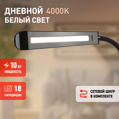 Настольный светильник ЭРА NLED-474-10W-BK позволяет не только с комфортом читать или работать за столом, но и заряжать мобильные устройства от встроенного порта USB или беспроводным способом. Даже если такая функция не встроена в сам гаджет, в комплекте поставки 2 модуля, подключаемых к телефону для обеспечения функции беспроводной зарядки: с разъемом для iPhone (Lightning) и Android (микро-USB). Встроенный USB порт при желании позволяет заряжать, например, планшет или второй телефон одновременно с беспроводной зарядкой, это очень удобно. Управление светильником осуществляется при помощи сенсорных кнопок на основании, есть возможность плавной регулировки яркости. Корпус светильника глянцевый, а гибкая стойка покрыта приятным на ощупь материалом софт-тач.