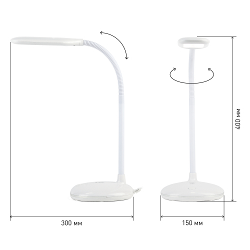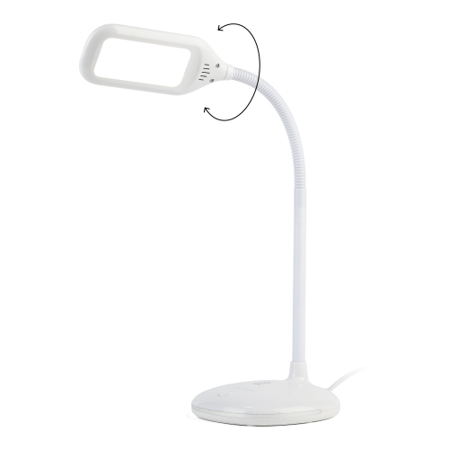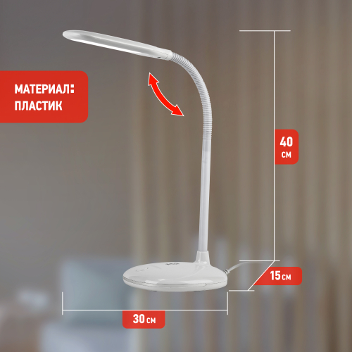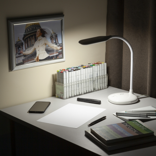 Настольный светильник со светодиодами (LED) в качестве источников света. Нейтральный белый свет - цветовая температура 4000К. Выключатель на основании. Гибкая стойка.