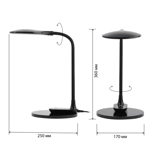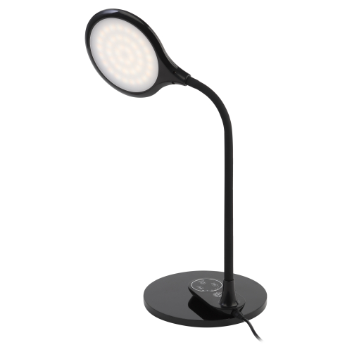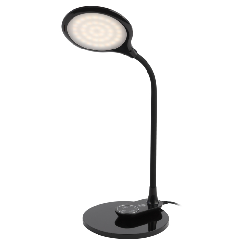 Настольный светильник со светодиодами (LED) в качестве источников света. Выбор цветовой температуры - 3 цвета: 3000К, 4500К, 6000К. Сенсорное переключение. Плавный диммер для регулировки яркости. Светильник сохраняет выбранные настройки при включении-выключении. Гибкая стойка. Съемное основание и возможность подвеса на стену.