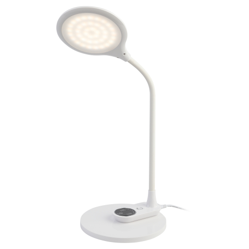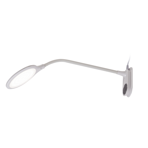 Настольный светильник со светодиодами (LED) в качестве источников света. Выбор цветовой температуры - 3 цвета: 3000К, 4500К, 6000К. Сенсорное переключение. Плавный диммер для регулировки яркости. Светильник сохраняет выбранные настройки при включении-выключении. Гибкая стойка. Съемное основание и возможность подвеса на стену.