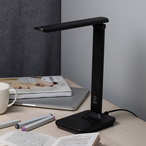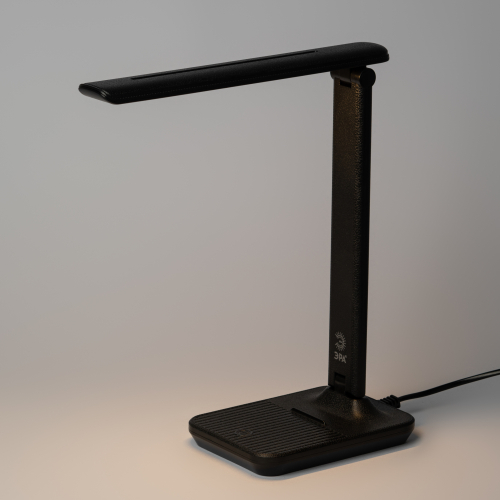 Настольный светильник ЭРА NLED-500-10W-BK со светодиодами (LED) в качестве источников света в дизайне "под кожу". Удобная складная модель с сенсорным управлением, возможностью выбора цветовой температуры и плавным диммером для регулировки яркости.