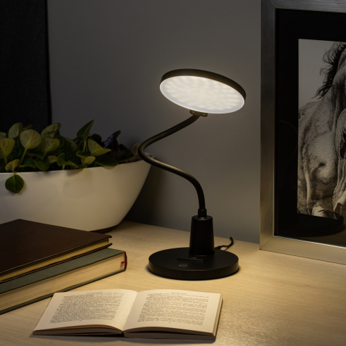 Настольный светильник ЭРА NLED-501-10W-BK со светодиодами (LED) в качестве источников света. Оснащен сенсорным управлением и плавным диммером для регулировки яркости. Форма плафона в виде круга обеспечивает оптимальное рассеивание света и очень удобна при мелкой ручной работе. Высота плафона регулируется гибкой стойкой, направление света регулируется поворотом плафона в любом направлении. Нейтральный белый свет - цветовая температура 4000К.