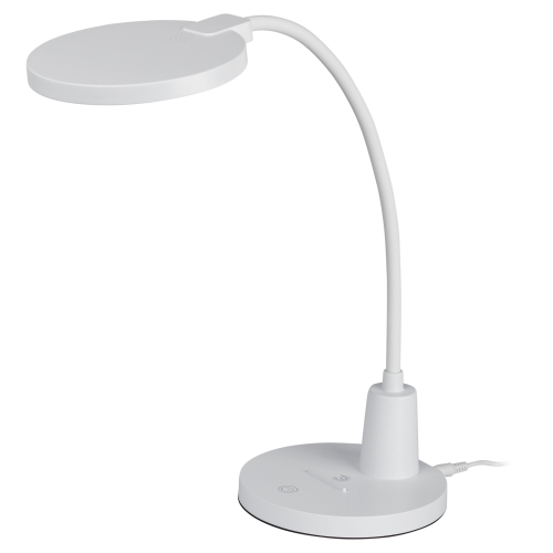 Настольный светильник ЭРА NLED-501-10W-W со светодиодами (LED) в качестве источников света. Оснащен сенсорным управлением и плавным диммером для регулировки яркости. Форма плафона в виде круга обеспечивает оптимальное рассеивание света и очень удобна при мелкой ручной работе. Высота плафона регулируется гибкой стойкой, направление света регулируется поворотом плафона в любом направлении. Нейтральный белый свет - цветовая температура 4000К.