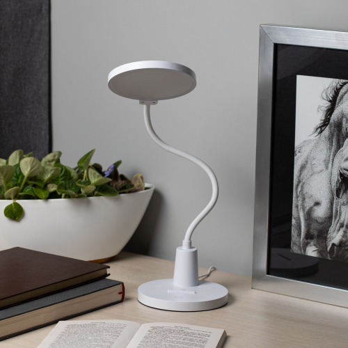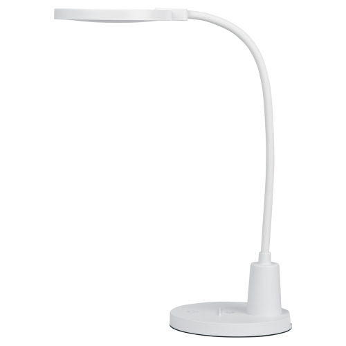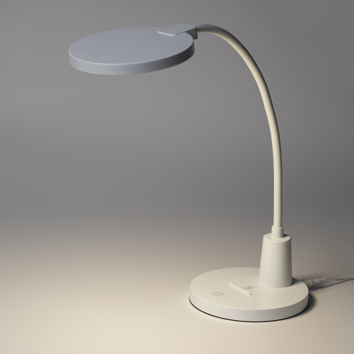 Настольный светильник со светодиодами (LED) в качестве источников света. Нейтральный белый свет - цветовая температура 4000К. Сенсорный переключатель на основании. Трехступенчатый диммер для регулировки яркости. Высокая гибкая стойка.