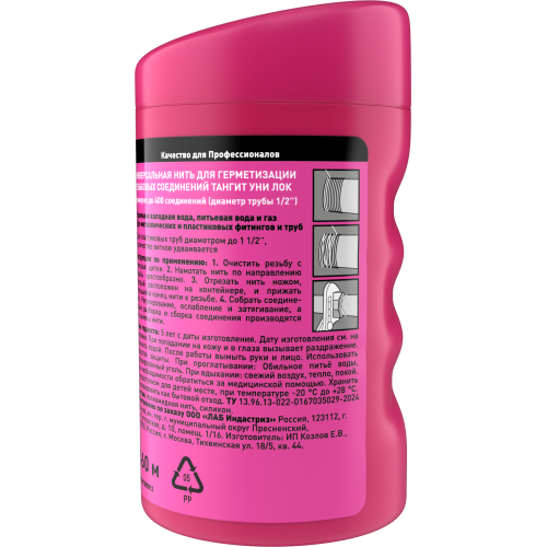 Вид материала: обработанная полиамидная многоволоконная нить. Устойчивость к воздействию температуры/давления: Газ: от -20oС до +70oС, ≤ 5 бар; Горячая вода: до +130oС, ≤ 7 бар; Питьевая вода: до +85oС, ≤ 16 бар. Этот продукт был испытан и соответствует EN 751-2 для соединения класса ARp, который создает основу для утверждения DVGW (Сертификат № NV-5142BP5597). Продукт был утвержден для применения в фитингах труб (для газа, холодной и горячей воды). Кроме того, он имеет утверждение для питьевой воды BS 6920 (1996). Стойкий к газам 1-й, 2-й и 3-й группы (3-я группа в парообразной фазе), горячей и холодной воде, газовым конденсатам, сжатому воздуху и промышленным маслам.