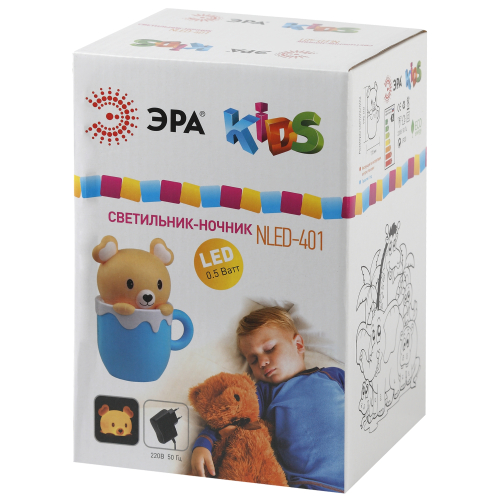 Аккуратный ночник для детей ЭРА NLED-401-0.5W-BU с удобной ручкой для переноски, с выключателем на ручке светильника. Этот светодиодный светильник поможет уснуть малышу, создаст уютную атмосферу во время отдыха семьи, а также легко впишется в декор детской комнаты. Светодиодный ночник для новорожденных работает от аккумулятора, а потому не зависит от проводов: подзарядите его с помощью входящего в комплект сетевого адаптера и свободно переносите из спальни в детскую комнату и наоборот. Добрый подарок и для самых маленьких, и для непосед постарше, и даже для взрослых - эта милая вещь вряд ли кого-то оставит равнодушным.