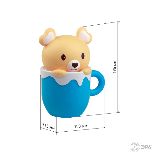 Светильник-ночник со светодиодами (LED) в качестве источников света. Встроенный аккумулятор для автономной работы. Сетевой адаптер в комплекте. Детский дизайн в виде медвежонка. Удобная ручка для переноски. Выключатель на ручке светильника.