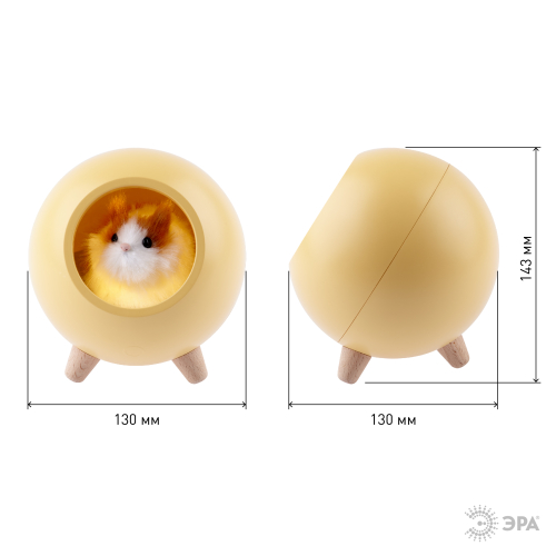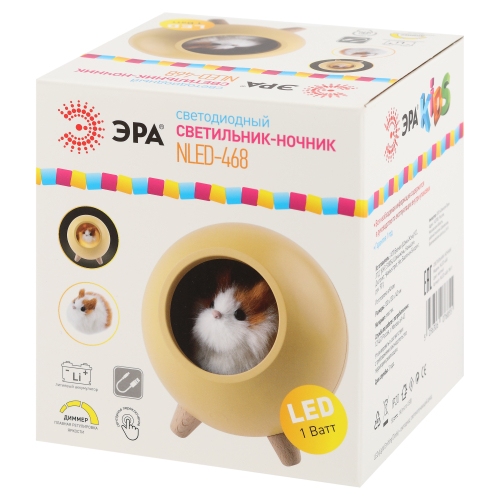 Автономный светильник-ночник ЭРА NLED-468-1W-Y со светодиодами (LED). Ночник выполнен в виде стильного корпуса-домика на деревянных ножках, в котором "живет" пушистый хомячок. Домик светится изнутри. Пушистого хомячка можно вытащить! Внутри светильника хомячок крепится на магнит, будет держаться на любой другой металлической поверхности. Встроенный литиевый аккумулятор для автономной работы. Подзарядка от USB. USB-кабель в комплекте. Плавная регулировка яркости (прикосновением и удерживанием сенсорной кнопки на фронтальной части). Выключатель на корпусе. Светодиодный светильник-ночник ЭРА создаст для вас уютную подсветку и хорошее настроение!
