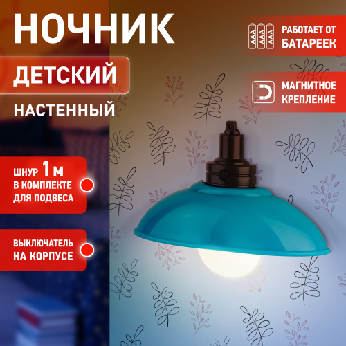 Автономный светильник-ночник на стену ЭРА NLED-487-1W-SW-BU со светодиодами (LED), с выключателем на корпусе. Дизайн корпуса ночника выполнен в форме подвесного светильника в стиле ретро. Светильник автономный, работает от элементов питания 3 х ААА (не входят в комплект поставки). Светильник легко крепится к любому типу поверхностей и легко снимается для подзарядки благодаря магнитным стикерам, входящим в комплект. Светильник можно подвесить при помощи шнура длиной 1 м (в комплекте): в верхней части светильника имеется удобное отверстие для подвеса. Светодиодный светильник-ночник ЭРА станет отличным элементом декора и создаст яркую подсветку там, где вам удобно! Легкий доступ к батарейкам для замены. Поставляется в блистерной упаковке с евроотверстием.