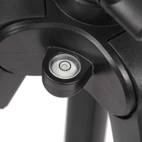 Фотоштатив для смартфонов 41,5/136,5 см, 0,58/2,5 кг. Имеет два пузырьковых уровня, изменяемую высоту, поворотную головку. Материал - алюминий, пластик. В комплекте держатель для смартфона, пульт управления смартфоном, крепится в специальное крепление на ножке штатива.