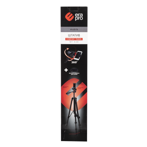Напольный штатив для фотоаппарата NT-530 от Era Pro - незаменимый помощник для съемок! NT-530 предназначен для работы с камерами весом до 3 кг. Штатив имеет стандартную резьбу в ¼ дюйма, которая позволяет фиксировать самые разнообразные модели фото и видеотехники. Трипод поможет воплотить в жизнь любые идеи своего обладателя: рабочая высота настраивается в диапазоне от 43 до 137 см. Штатив оснащен встроенным уровнем, обеспечивающим идеально ровную установку. 3D головка позволяет вращаться камере не только горизонтально и вертикально, но и наклоняться вбок. Приятным бонусом станет наличие в комплекте держателя для телефона и пульта управления. NT-530 выполнен из легкого, прочного алюминия. Благодаря простому процессу сборки экономится Ваше время на подготовку к работе. Входящий в комплект чехол с ремешком позволит с комфортом носить штатив с собой и защитит его от нежелательных повреждений. Купить штатив от Era Pro – значит сделать правильный выбор! Наш бренд – это высокое качество и выгодная цена!