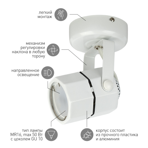 лампа MR16 с цоколем GU10 (в комплект не входит)