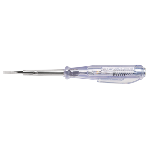 Тестер используется для проверки электрического тока в электроустановках. Пригоден для профессионального и домашнего использования. Наконечник тестера изготовлен из закаленной специальной стали. Из=инструмент обладает никелированной отделкой. Электрическая цепь замыкается путём нажатием кнопки на краю ручки. Неоновый свет. Подходит для электрических сетей с напряжением 80 - 250 В Лезвия отвертки проверяются с помощью специального оборудования, чтобы гарантировать идеальный баланс между механической прочностью и твердостью. Ручка тестера изготовлены из высокопрочных материалов.