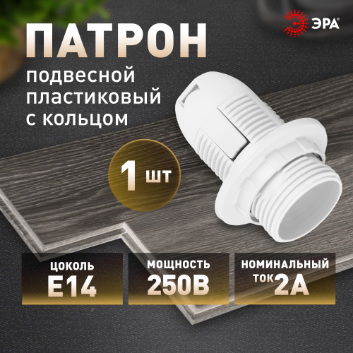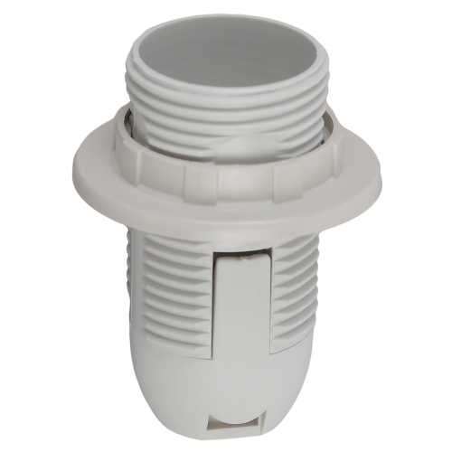 патрон с кольцом изготавливается из термостойкого пластика, материал химически устойчивый к агрессивным средам, обладает высокой прочностью и теплостойкостью; не обладает способностью выдерживать высокие температуры нагрева, поэтому его чаще всего используют для ламп накаливания мощностью не более 60 Вт