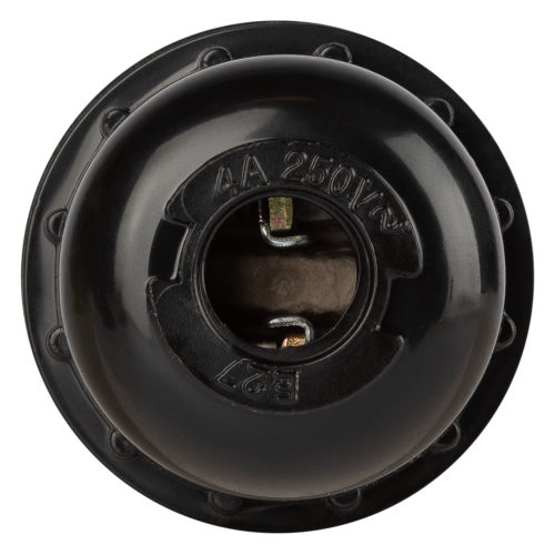 бакелитовый патрон подвесной; способен выдерживать высокие температуры (до 300 градусов), обладает высокими электроизоляционными и антикоррозийными свойствами, не подвержен воздействию агрессивных сред; удобное подключение провода к контактной группе с помощью зажимных винтов