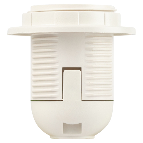 патрон с кольцом изготавливается из термостойкого пластика, материал химически устойчивый к агрессивным средам, обладает высокой прочностью и теплостойкостью; не обладает способностью выдерживать высокие температуры нагрева, поэтому его чаще всего используют для ламп накаливания мощностью не более 60 Вт