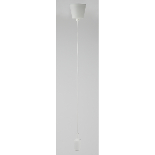 патрон с подвесом, длина провода 80 см, изготавливается из термостойкого пластика, материал химически устойчивый к агрессивным средам, обладает высокой прочностью и теплостойкостью; не обладает способностью выдерживать высокие температуры нагрева, поэтому его чаще всего используют для ламп накаливания мощностью не более 60 Вт. Есть регулировка длины шнура.
