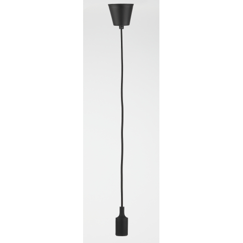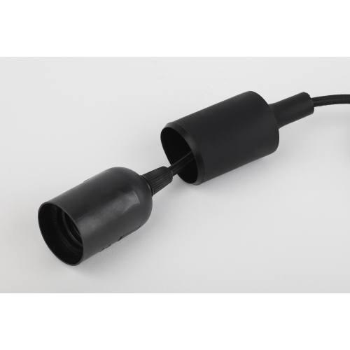 патрон с подвесом, длина провода 80 см, изготавливается из термостойкого пластика, материал химически устойчивый к агрессивным средам, обладает высокой прочностью и теплостойкостью; не обладает способностью выдерживать высокие температуры нагрева, поэтому его чаще всего используют для ламп накаливания мощностью не более 60 Вт. Есть регулировка длины шнура.