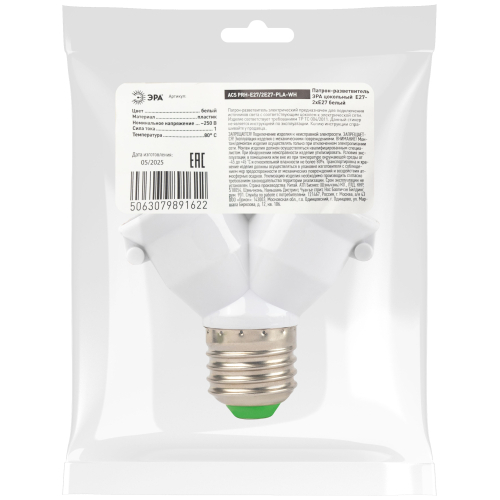 Патрон-разветвитель ЭРА цокольный предназначен для подключения нескольких ламп с цоколем E27 одновременно к одному источнику. Он широко используется в строительстве, монтажных работах и быту. Удваивает количество света без замены светильника.