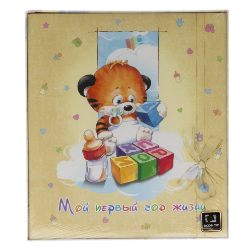 Фотоальбом для фотографий детский, 11 магнитных листов, размер листов 30х31 + 11 иллюстрированных листов для записей самых важных или ярких моментов в жизни, дизайн с тигренком.