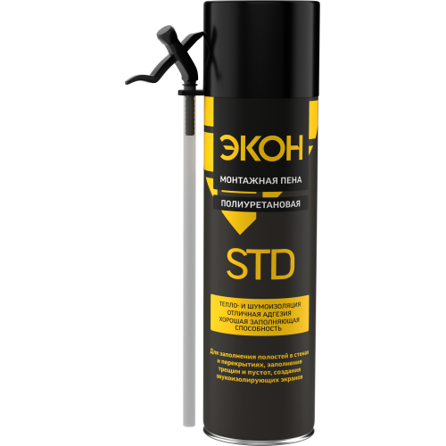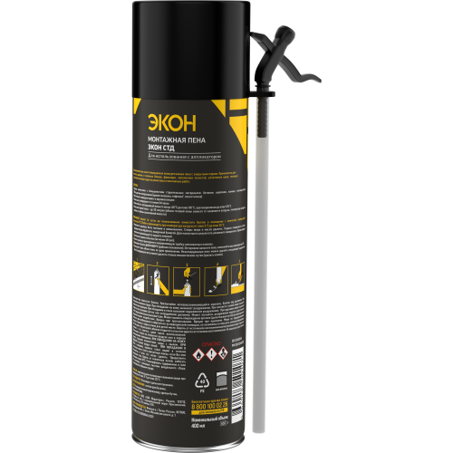 Перед использованием за сутки необходимо выдержать баллон при комнатной температуре. Работы производить при температуре от плюс 5°С до плюс 35°С. Поверхности должны быть чистыми и непыльными. Следы жира и масла удалить. Гладкие поверхности лучше предварительно обработать наждачной бумагой. Для наилучшего результата увлажнить поверхности. Прилегающие поверхности лучше закрыть пленкой. Тщательно взболтайте баллон не менее 20 раз. Снимите крышку, присоедините направляющую трубку-аппликатор к клапану. Переверните баллон «дном вверх» (рабочее положение). Осторожно нанесите пену, заполняйте швы примерно на 2/3. Используйте весь объем пены за одно применение. Незатвердевшую пену можно удалить очищающей жидкости Экон. Затвердевшую пену можно удалить только механическим путем. РАЗМЕРЫ СОЕДИНЕНИЙ Максимальная ширина соединений при использовании должна быть до 4 см шириной и до 10 см глубиной. Рекомендуется заполнять соединения слой за слоем, сбрызгивая водой каждый слой.