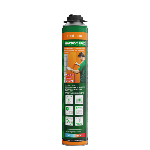 Готовая к употреблению сверхэффективная универсальная расширяющаяся клей-пена для быстрой фиксации изозяционных панелей к фасадам и фундаментам, панелей внутренней отделки к стенам, установки подоконников. Благодаря этому инновационному продукту больше не понадобятся тяжелые мешки, дополнительное оборудование, вода и энергия; больше не будет пыли и грязи, длительной работы по очистке и других поглощающих время работ. Клей-пена позволяет выполнить работу значительно меньшими усилиями и помогает вдвое сократить затрачиваемое на работу время.