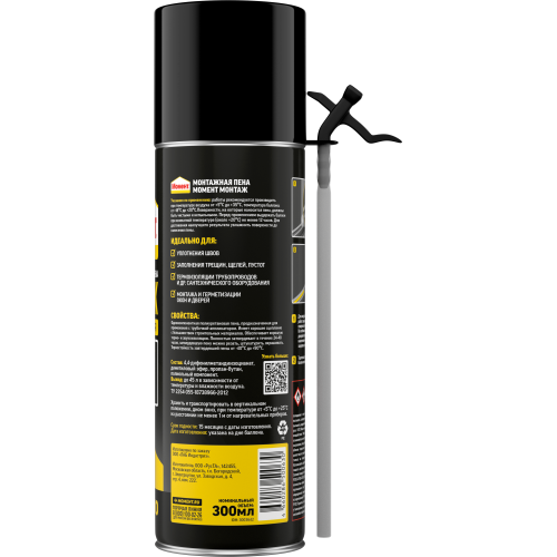 Монтажная пена Момент Монтаж Стандартная представляет собой готовую к применению однокомпонентную полиуретановую пену, затвердевающую под воздействием влажности воздуха.