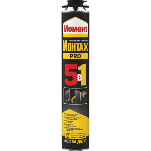 Момент Монтаж 5в1 ПРОФ клей-пена - это профессиональная однокомпонентная полиуретановая клей-пена для различных применений.