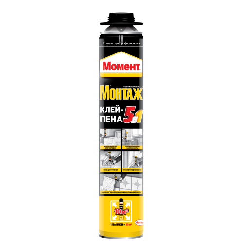 Момент Монтаж 5в1 ПРОФ клей-пена - это профессиональная однокомпонентная полиуретановая клей-пена для различных применений.