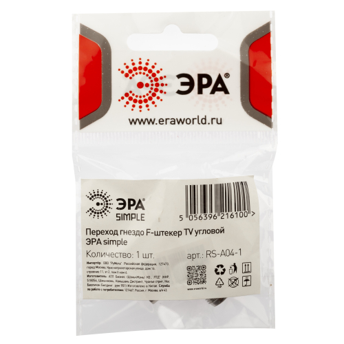 Переходники F на TV предназначены для быстрого подключения эфирного, спутникового и кабельного телевидения с помощью телевизионного кабеля волновым сопротивлением 75 Ом. Для установки не требуются специальный инструмент и профессиональные навыки.