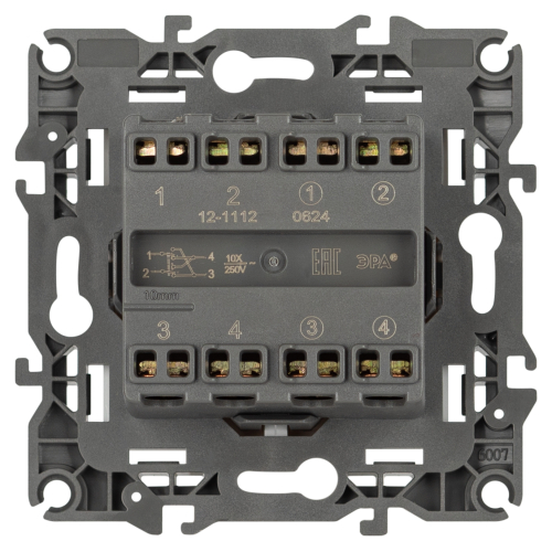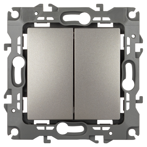 Выключатель перекрёстный/промежуточный двойной серии Эра 12 скрытой установки механизм, цвет титан 12-1112-16. Номинальные хар-ки 10А 250В. Сделан из поликарбоната, оснащён автоматическими клеммами для быстрой и надёжной фиксации жил кабеля в механизме. Парные клеммы обеспечивают соединение шлейфом. Монтаж в подрозетник производится на винты. Рамки приобретаются отдельно.