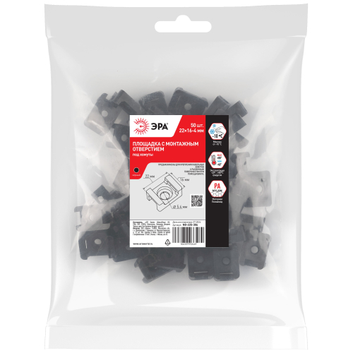 Площадки под хомуты ЭРА с монтажным отверстием предназначены для монтажа кабельных стяжек к различным поверхностям при помощи винта или самореза.