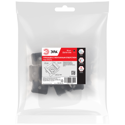 Площадки под хомуты ЭРА с монтажным отверстием предназначены для монтажа кабельных стяжек к различным поверхностям при помощи винта или самореза.