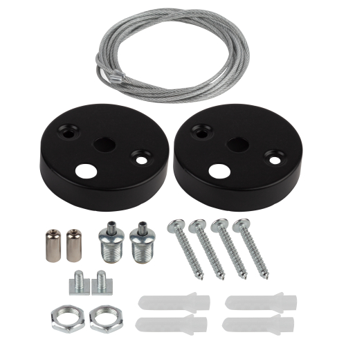 Комплект креплений для магистральных светильников ЭРА SML. В крепёжный набор входят 2 комплекта креплений - для накладного и подвесного монтажа. Длину троса при подвесном монтаже можно регулировать (максимальная длина подвеса светильника - 1 метр).