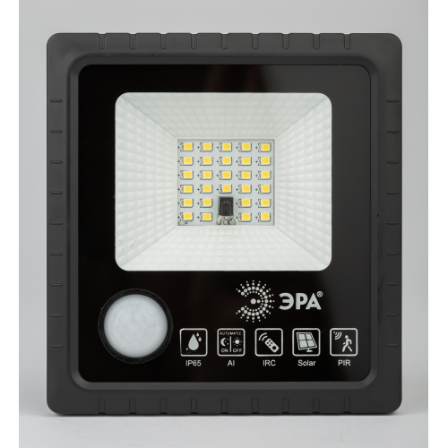 Cветодиодный уличный прожектор ЭРА ERAPRO-20 на солнечных батареях имеет высокую защиту от влаги и пыли (IP65) и функционирует в широком температурном диапазоне (от - 20 до + 50 градусов). В модель встроен морозоустойчивый сменный литий-ионный аккумулятор. Солнечная панель входит в комплект. Время полного заряда составляет 8 часов. В качестве источников света используются сверхъяркие светодиоды последнего поколения в количестве 28 штук. В прожекторе установлен датчик движения: освещение будет включено только в тот период, когда рядом находятся люди. Время до перехода в дежурный режим составляет 30 секунд. Датчик движения имеет возможность отключения. В комплекте поставляется пульт дистанционного управления, который позволяет на расстоянии включать и выключать свет, отключать датчик движения, устанавливать таймер работы, регулировать яркость. Уличный прожектор ЭРА ERAPRO-20 – верный выбор для подсветки дачной территории!