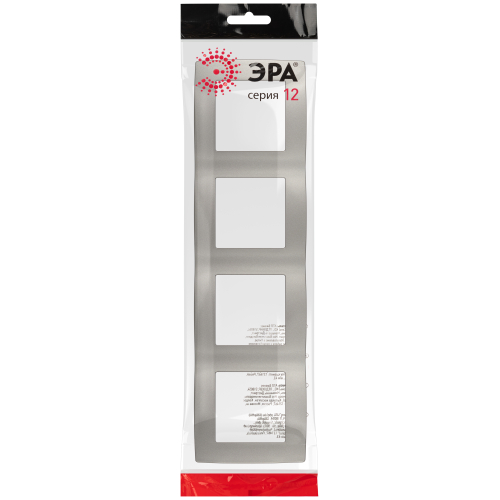 Рамка для выключателей и розеток 4-постовая серии Эра 12 цвет титан 12-5004-16. Сделана из поликарбоната. Используется только с механизмами серии Эра 12.
